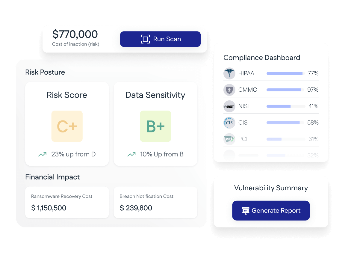 Cyrisma unifies four key modules - Attack Surface Management, Vulnerability Management, Data Discovery, and Compliance Tracking - into a single dashboard, purpose-built for MSPs, MSSPs, and IT Teams.